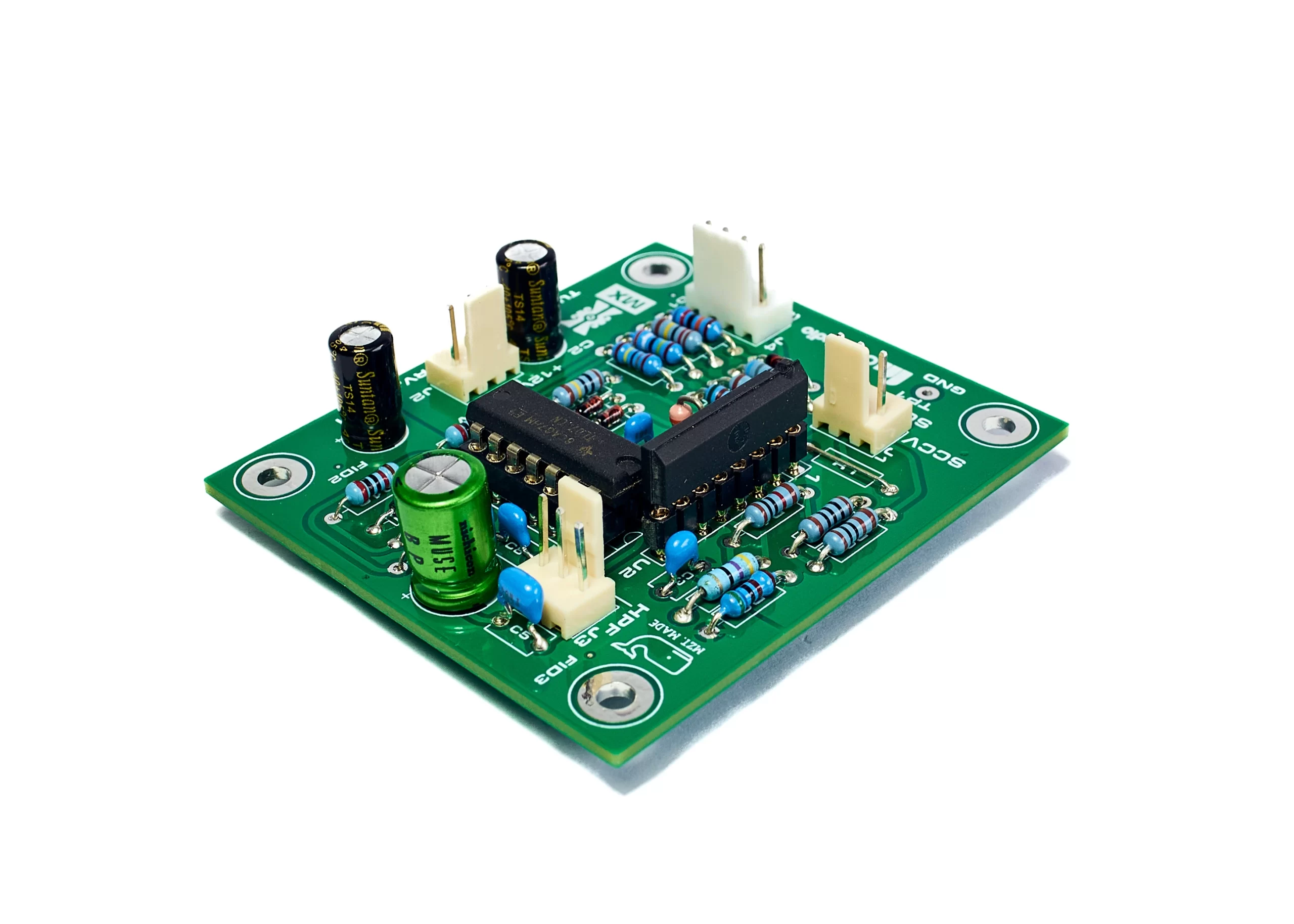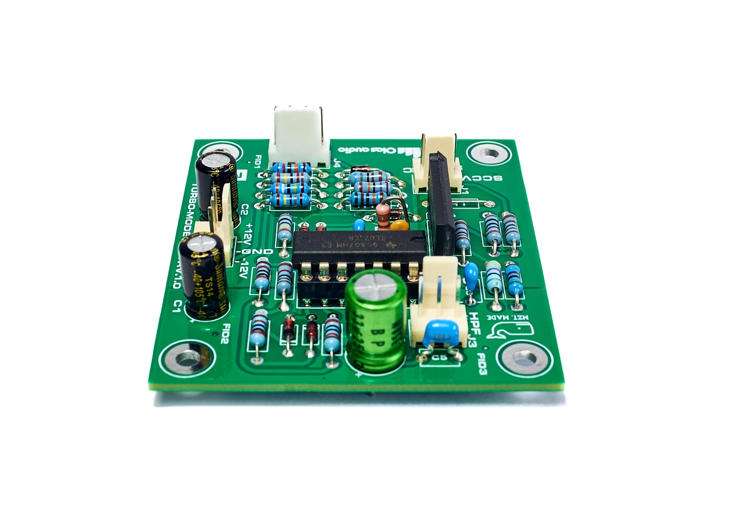 This product complements the KTR-4000 MASTER BOARD. It allows true stereo sidechain VCA operation of the Mix Bus Compressor. It consists of a high-quality double-sided plated-through-hole PCB (Lead-free HASL) with solder mask on both sides and full screen print. The PCB dimensions are 63mm by 56mm and include four M3 fixing holes.